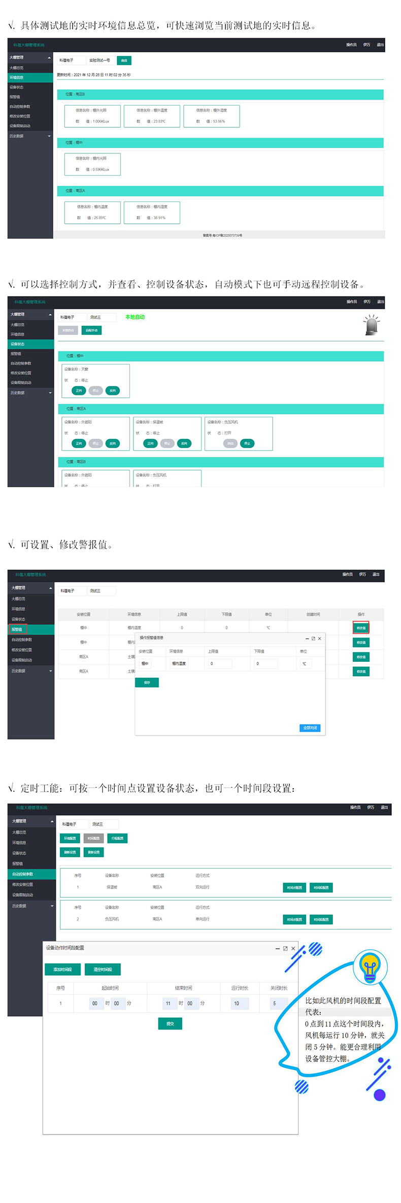 1、智能自控:在遠(yuǎn)程控制采集基礎(chǔ)上,增加邏輯判斷自動控制能力,實現(xiàn)自動調(diào)整、設(shè)置、控制環(huán)境策略。